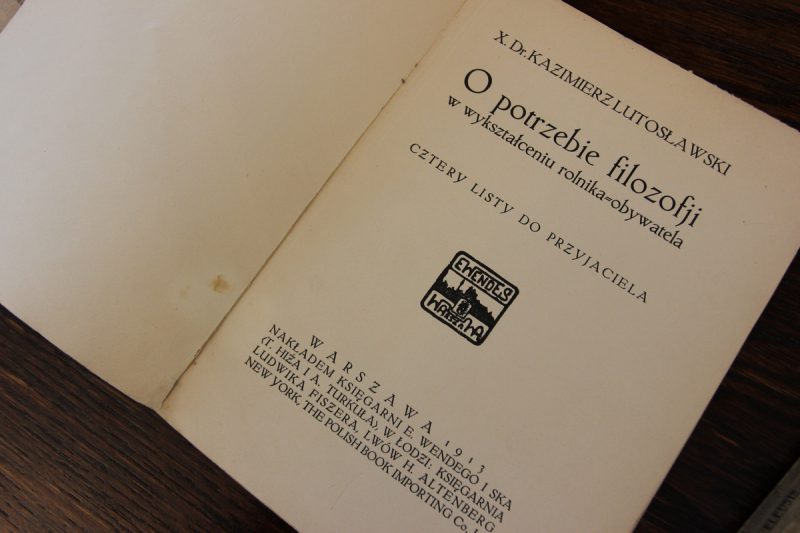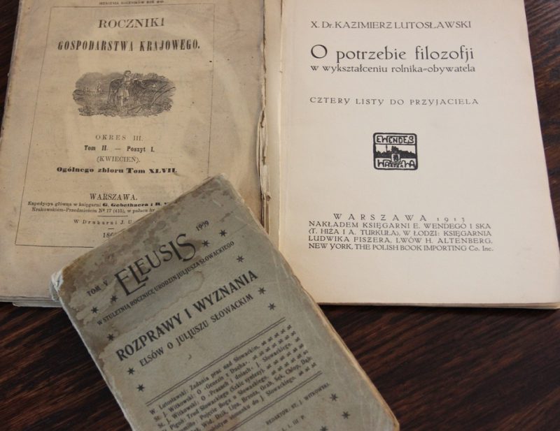 Nowym wzbogaceniem księgozbioru są podarowane przez Sławomira Zgrzywę podczas inauguracji II kadencji Rady Muzeum (24 kwietnia 2022) trzy bibliofilskie perełki. Pierwszą są „Roczniki Gospodarstwa Krajowego” z 1862 roku z informacją o podróżach rolniczych Franciszka Dionizego Lutosławskiego. Przypomnijmy, że podczas podróży po różnych krajach zachodnich, właściciel Drozdowa poznawał najlepsze technologie uprawy i hodowli, a następnie sprowadzał je i wykorzystywał w swoim majątku. Ciekawy jest też tom V pisma „ELEUSIS” z 1909 roku z tekstem Wincentego Lutosławskiego na temat Juliusza Słowackiego. Pismo było związane z założonym przez filozofa z Drozdowa stowarzyszeniem ELEUSIS o charakterze patriotyczno-religijnym. Spod skrzydeł tej organizacji odwołującej się do filozofii polskiego mesjanizmu i dzieł wielkich wieszczów (w tym Słowackiego), wyszło wiele znakomitych postaci, zasłużonych dla naszego kraju. Trzecim wydawnictwem jest rozprawa księdza doktora Kazimierza Lutosławskiego „O potrzebie filozofii w wykształceniu rolnika-obywatela. Cztery listy do przyjaciela” pochodząca z roku 1913. Od razu trzeba wyjaśnić, że określenie rolnik-obywatel użyte w tytule znaczyło po prostu to samo co ziemianin, członek warstwy społecznej ziemiaństwa. Znamienna jest dedykacja książki: „księstwu Witoldostwu Czartoryskim z Pełkiń”. Była to rodzina wybitnych patriotów, władająca bardzo dużym majątkiem rolno-przemysłowym, zaangażowana w sprawy kraju, z którą ksiądz Lutosławski był zaprzyjaźniony. Czartoryscy gościli w Drozdowie na jego Mszy prymicyjnej w roku 1912. Książę Witold podarował wtedy parafii drozdowskiej piękny kielich mszalny. Ta niewielka rozprawa ma wartość uniwersalną i ponadczasową, ponieważ filozofia – jak napisał ksiądz Lutosławski – „podnosi realność życia, sprowadzając wartość i wagę spraw doczesnych i materialnych do ich właściwej miary”.