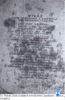 Wymienieni na tablicy, pozostali przy życiu w 1943 roku mieszkańcy Krasowa Częstek, to: