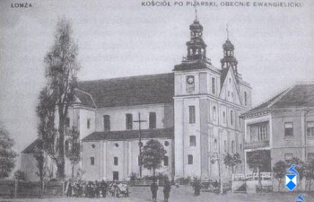Ponieważ w Łomży ewangelicy nie mieli swojej świątyni, przejęli w 1853 roku od władz carskich zniszczony kościół popijarski który, po opuszczeniu go przez zakonników był wojskowym magazynem zboża. Na remont zniszczonej świątyni dostali też ewangelicy od władz 3 tysiące rubli