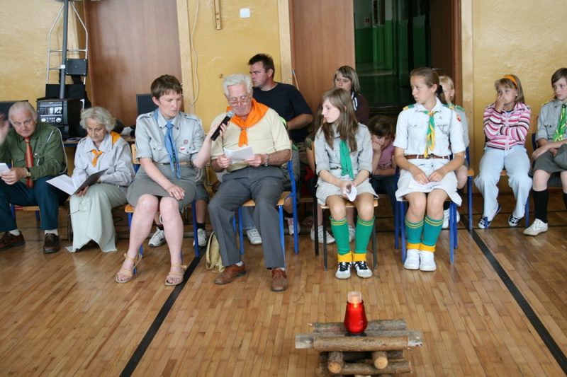 Drugi dzień zlotu zakończyła gra RPG4 z fabułą indiańską, podczas której patrole musiały poskładać fakty, by domyśleć się gdzie jest złoto. W niedzielę po śniadaniu i apelu, na którym zostały rozdane nagrody, wyruszyliśmy pieszo na spotkanie z weteranami, którzy czekali na nas z obiadem w Nowogrodzie. Po wspólnym posiłku odbyło się ognisko, na którym weterani przedstawili swoją twórczość i śpiewali stare harcerskie piosenki. My zaprezentowaliśmy dwie piosenki, po czym musieliśmy wsiąść do autokaru, który już na nas czekał, aby odwieźć nas do domów.