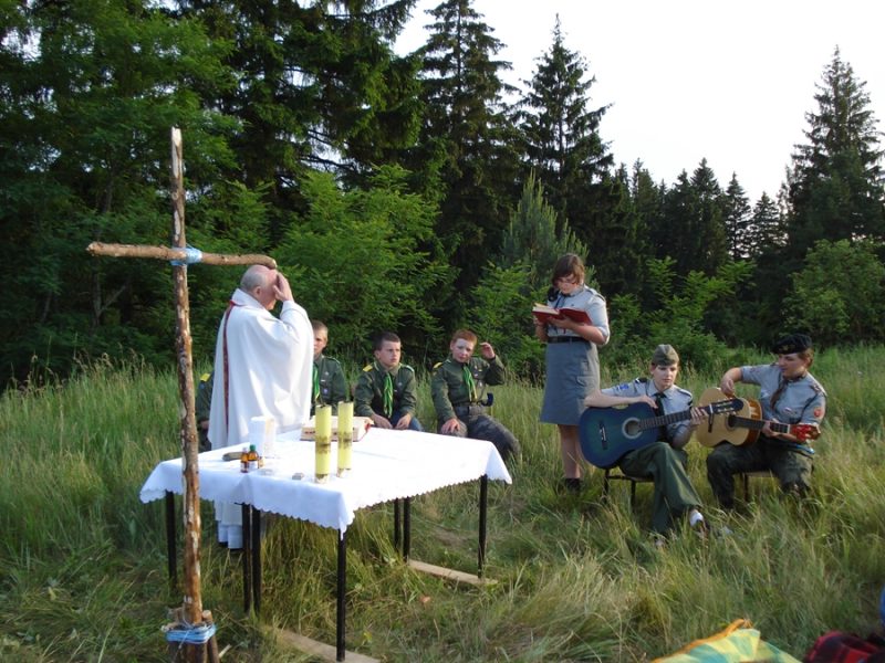 Po apelu wyruszyliśmy na górę Św. Wawrzyńca, aby tam uczestniczyć w mszy św. w obrządku łacińskim, podsumowującej obrady Episkopatu Polski. Udaliśmy się także na ognisko z weteranami harcerskimi.