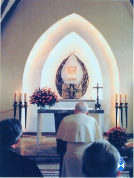 Ojciec Święty modli się w Kaplicy Najświętszego Sakramentu.
