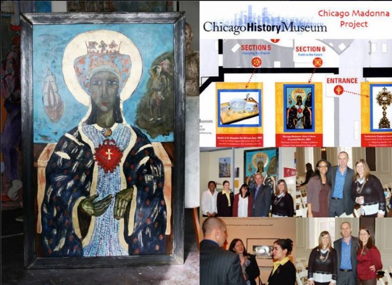 W roku 2004 Krzysztof z Martą przyjeżdżają do Polski, by zabrać rodziców do Rzymu na spotkanie z Papieżem Janem Pawłem II. Wyjazd stał się inspiracją do stworzenia cyklu wizerunków Matki Bożej ,w różnych aspektach, między innymi: Madonna Szepcących Aniołów, Madonna Ukraińska , czy Madonna Głodu. Obrazy były wystawiane w różnych galeriach. W tym czasie w Muzeum Historii w Chicago trwały przygotowania do wystawy „Katolickie Chicago”. Przygotowania tej wystawy trwały trzy lata. Kurator Jill Grannan zwróciła się do Krzysztofa z prośą o namalowanie obrazu. Krzysztof namalował dość spory wizerunek Madonny chicagowskiej – Madonna Chicago, który był eksponowany w 2008 roku na wystawie związanej z historią katolicyzmu. Jej wizerunek zawiera elementy godła Chicago oraz symbole przywołujące cechy charakterystyczne miasta. Z prawej strony Indianin, wyraża pierwszych mieszkańców tej ziemi, statek z lewej strony symbolizuje handel a serce na piersi Madonny, to wspomnienie wielkiego pożaru miasta. Po zakończeniu wystawy / 15.03. 2008 – 04.01. 2009 / Krzysztof podarował ten obraz dla muzeum.