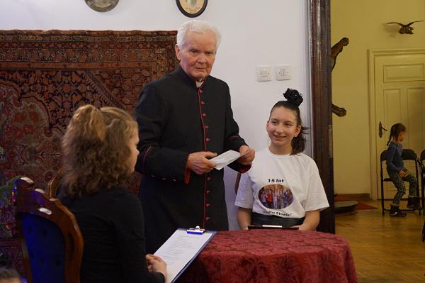 12 stycznia 2019 roku gościliśmy księdza Grochowskiego na wieczorze kolęd i pastorałek zorganizowanym przez nasz szkolny chór we współpracy z Muzeum Przyrody w Drozdowie (obecnie Muzeum Przyrody – Dwór Lutosławskich w Drozdowie ).To jemu właśnie wówczas zadedykowaliśmy to nasze 12. spotkanie kolędowo-pastorałkowe z racji pięknego jubileuszu 60 lat kapłaństwa. Druga część wieczoru w całości poświęcona była szanownemu jubilatowi, który ciekawie i z humorem opowiadał o swoim życiu w konwencji wywiadu. Odpowiadając na pytania Julki i Magdy z rozrzewnieniem wspominał dzieciństwo, recytował wiersze, a nawet śpiewał i przytaczał anegdoty.