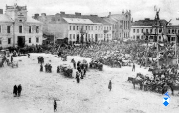 Stary rynek po lewej stronie ratusz( w głębi po prawej widać synagogę)