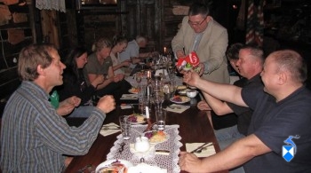 W trakcie ufundowanego sumptem Prezydenta Łomża wieczornego poczęstunku członków międzynarodowej wyprawy historycznej – jej uczestnicy nie kryli swojego zaskoczenia profesjonalnym poziomem przygotowania ich wizyty. Dodatkowo ku miłemu zaskoczeniu szefa wyprawy Joosta, dla członków ekspedycji w trakcie kolacji zostały wręczone przez przewodniczącego Rady Miasta Macieja Borysewicza pamiątkowe łomżyńskie Jantary, a ze strony Bractwa odpisy archiwalnych dokumentów i map dokumentujących historyczne okoliczności i prawdopodobne miejsce cesarskiego pobytu w Łomży. Może okazać się nim nie istniejący obecnie zajazd pocztowy /Pocztamt – przyp. własny/, położony bezpośrednio przy Trakcie Kowieńskim /dzisiejsza ul. Wojska Polskiego – przyp. własny/ w okolicach dzisiejszej siedziby ODN przy PL. Kościuszki.
