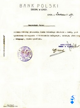 Ale wybiegliśmy tu w przyszłość. Wróćmy zatem do przygotowującej się do wojny Łomży. Dla mnie wojna rozpoczęła się 2 września 1939 roku. W tym dniu otrzymaliśmy z Mamą dokumenty ewakuacyjne z Banku Polskiego i odprawę pieniężną.