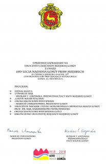 Dla upamiętnienia dnia, od którego liczymy 600-letnią rocznicę nadania praw miejskich w dniu 15 czerwca 2018 roku, odbyła się w Łomży uroczysta sesja Rady Miejskiej, na którą zaproszenie Prezydenta Łomży Mariusza Chrzanowskiego m. innymi przyjęli: ks. Biskup Łomżyński Janusz Stepnowski, ks. Biskup pomocniczy łomżyński Tadeusz Bronakowski, Andrzej Dera Sekretarz Stanu w Kancelarii Prezydenta RP, Magdalena Gawin Wiceministra Kultury i Dziedzictwa Narodowego, Anna Maria Anders Senator Rzeczpospolitej, Ivana Kitova I sekretarz Republiki Bułgarii, Jarosław Książek Konsul Generalny Polski w Grodnie, Wacław Stankiewicz Konsul Republiki Litewskiej w Sejnach, Witold Kraszewski Konsul Honorowy Republiki Bułgarii w Polsce oraz Bogdan Paszkowski Wojewoda Podlaski.