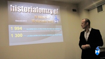 Prowadzący uroczystość Mariusz Patalan podczas krótkiego podsumowania ubiegłorocznych dokonań zespołu redakcyjnego serwisu historialomzy.pl, zaprezentował imponujące wyniki czytelnictwa jego użytkowników.