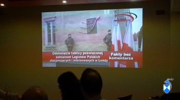 Po prezentacji zaproszeni goście obejrzeli wspomnieniowy materiał filmowy przygotowany przez Studio Skorpion, przedstawiający skrót z uroczystości odsłonięcia i poświęcenia na terenie łomżyńskich koszar upamiętnienia w Łomży Tablicy Pamięci Czynu Legionowego.