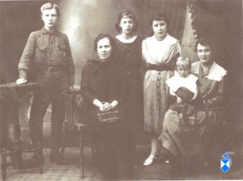 Siedzi Mama – pani Stanisława Nożewska z d. Lichomska. Stoją: Tadeusz (późniejszy inżynier – zamordowany przez Niemców), Maria, siostra-bliźniaczka Tadeusza – Zofia (późniejsza nauczycielka), a siedzi z córeczką Aleksandrą – przyrodnia siostry Marii – Jadwiga Gilewicz.