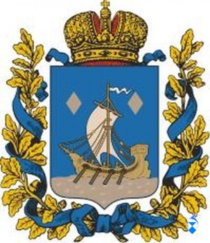 Herb guberni statek z rozwiniętymi żaglami na niebieskim polu.