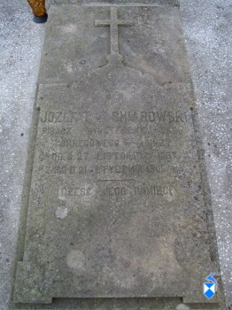 (Na płycie) – „śp. Józefat Śmiarowski pisarz hipoteczny sądu okręgowego w Łomży ur. d. 27 listopada 1837 r. zm. d. 2 stycznia 1905 r. Cześć jego pamięci.”