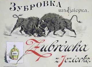 Co do etykietek czy butelek, to znana jest tylko przedstawiona powyżej etykietka (czy to może jakiś materiał reklamowy) z wódki Żubrówki, która pochodzi jeszcze sprzed I wojny światowej.