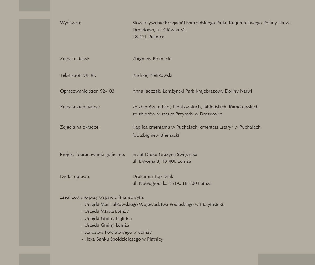 Wydawca: Stowarzyszenie Przyjaciół Łomżyńskiego Parku Krajobrazowego Doliny Narwi Drozdowo, ul. Główna 52 18-421 Piątnica