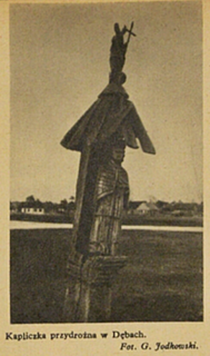 Z Myszyńca kolejką wąskotorową jedziemy na wschód, mijając większe wsie kurpiowskie (z przystankami kolejowemi): Dęby, Pupkowizna, Cieloszka, Turośl (gmina, parafja), Ptaki – dojeżdżamy do Kolna. Tuż pod wsią Dyby nad Szkwą, mijamy starą kapliczkę przydrożną.